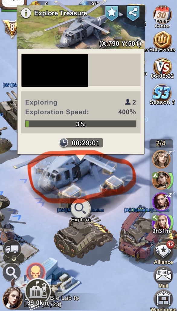 When you get to the treasure and the time starts getting close you click ones on it to get up the treasure window.